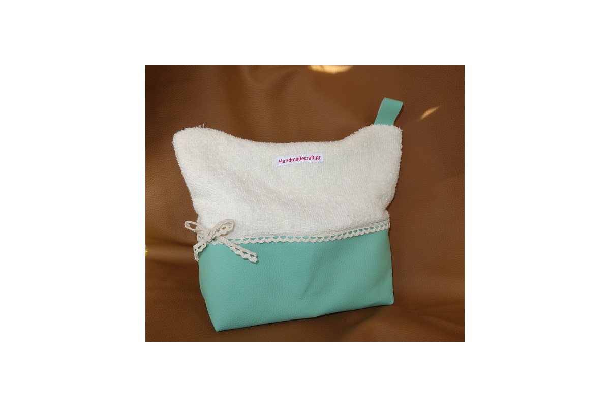 Materials: 100% cotton poplin fabrics, towel & leather, cotton lace, zipper, Gutterman thread.